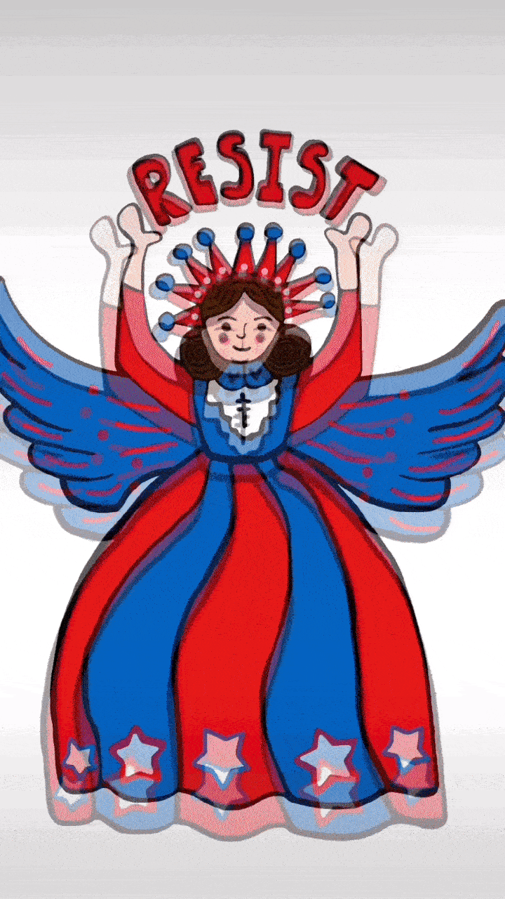 Support democracy with my Resist Angel. The digital image is available for free download at this time for use on social media, text and email to spread support for decency, democracy and the resistance of the rise of authoritarianism. You have to go through the checkout process to be able to download. *Files are only for personal use. Commercial use prohibited.